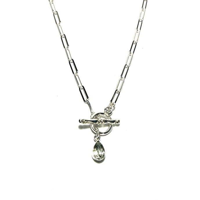 Sterling Blue Topaz & Paperclip Necklace