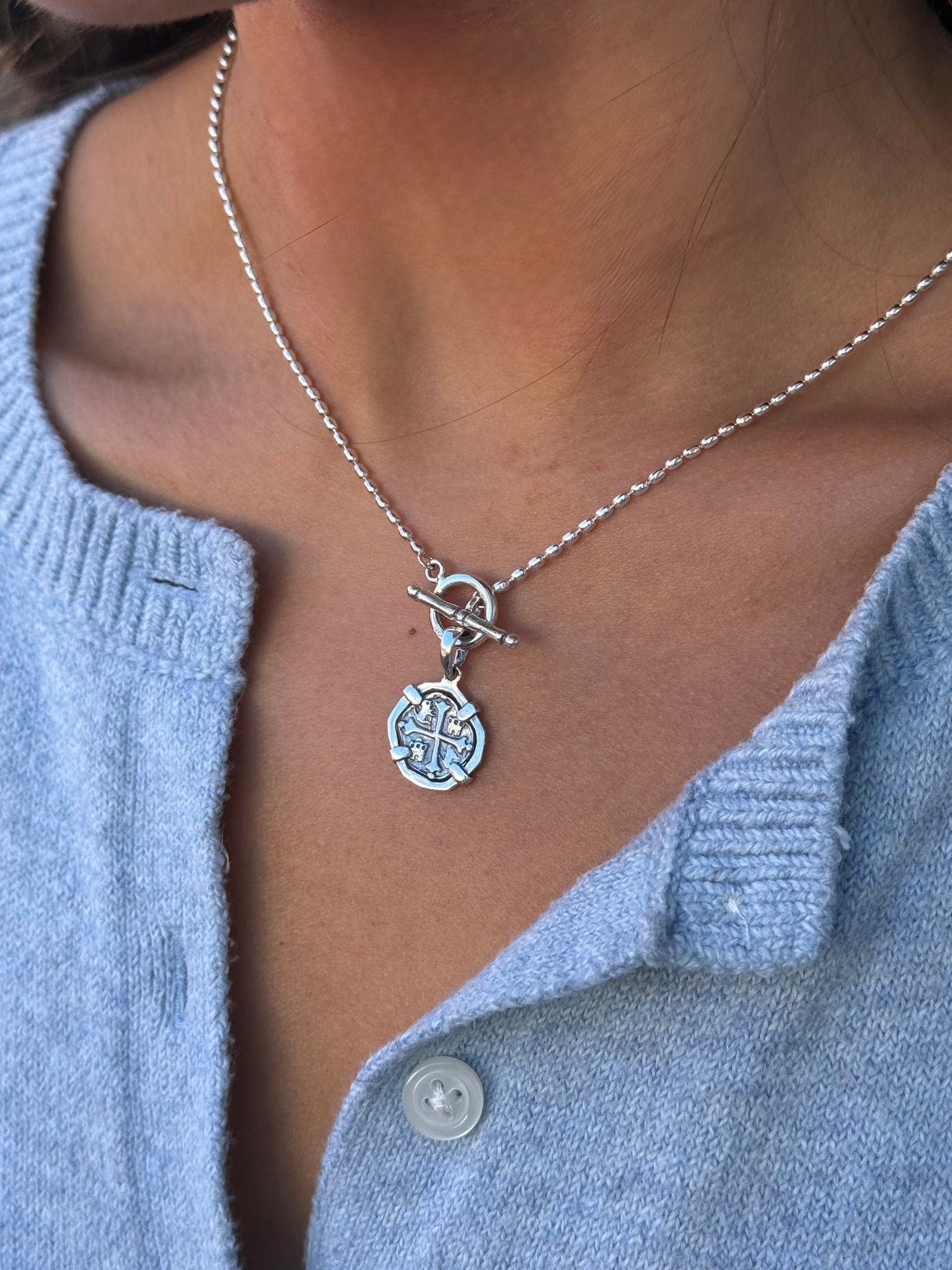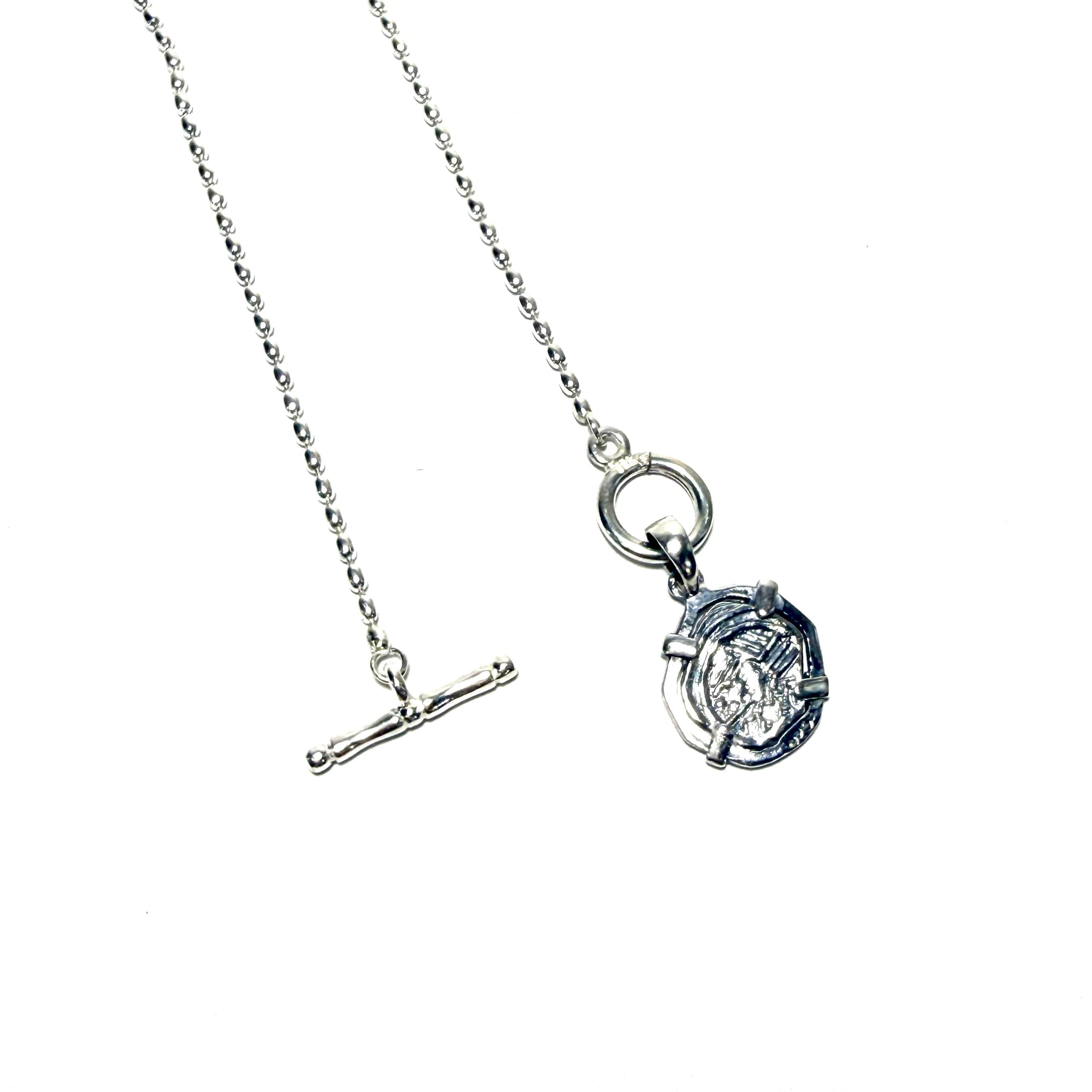 This sterling silver Rice Bead necklace is a replica inspired by the legendary Atocha coin treasure, recovered from the Spanish galleon Nuestra Señora de Atocha lost in 1622 and discovered centuries later. A timeless toggle clasp and Rice Bead necklace makes this a wearable piece of history, blending classic craftsmanship with contemporary style.