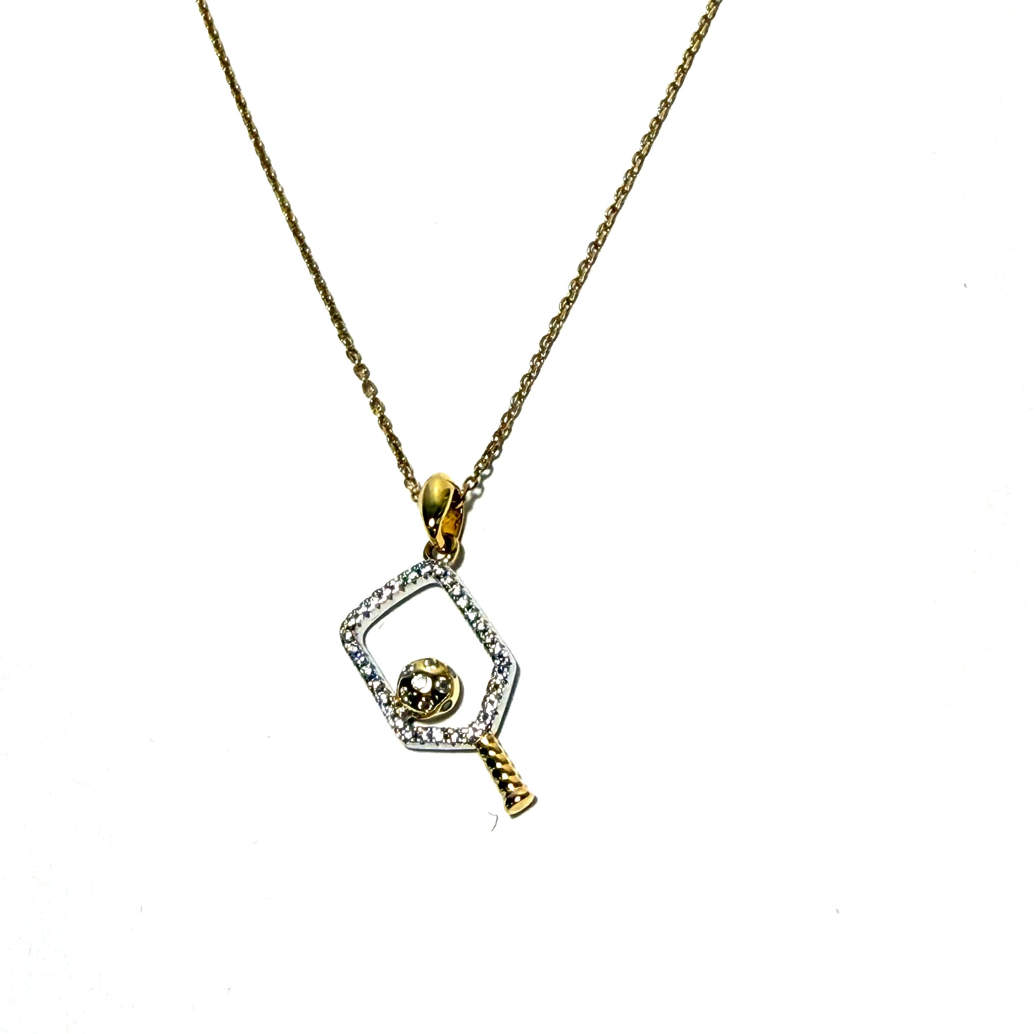 Sterling Silver Vermeil Pickleball Paddle Necklace with Austrian Crysta